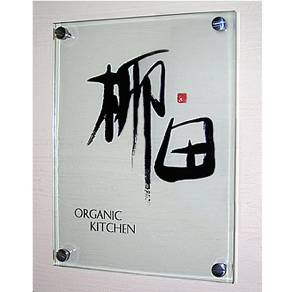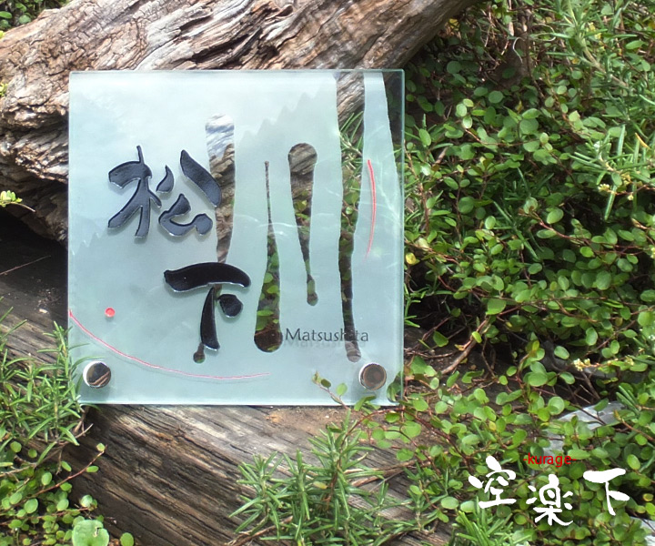 ガラスの凛とした表情に自然をモチーフにした柔らかなデザインを加えた表札「空楽下-kurage-(くらげ)」。
