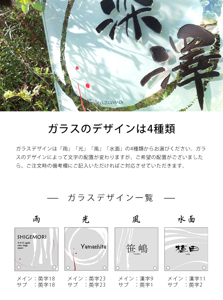 通常の書体の他に書家による筆文字がお選びいただけます。(和、渦、音、宵、葉の5種類)