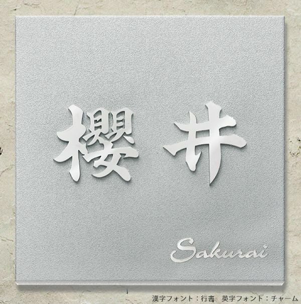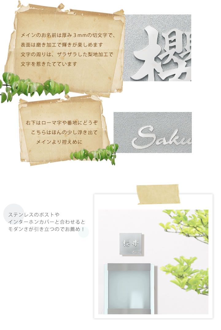 表札 ステンレス 銀 切文字の凸感がリッチ 「ステンレス表札 KT-2」