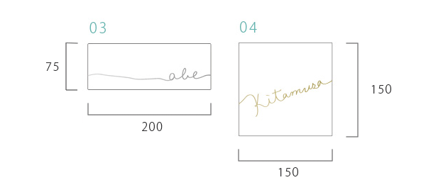 お名前続くラインの端は、キャンパスの端で終わっていますが、その先は、目に見えない繊細なライン(リボン)が続いている、そんな想像がかきたてられますね。