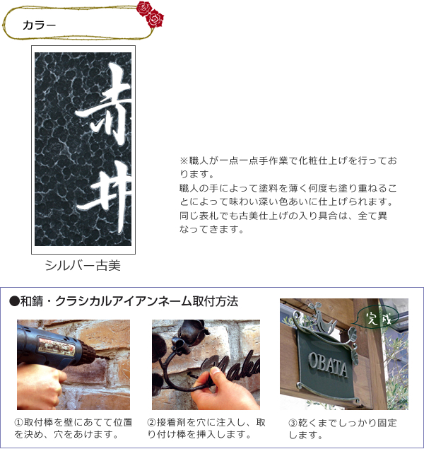 この表札「和錆」は、そんな作り手の心が映し出されたネームプレートとして、住み手だけではなく、近隣にも語りかけてくれることでしょう。