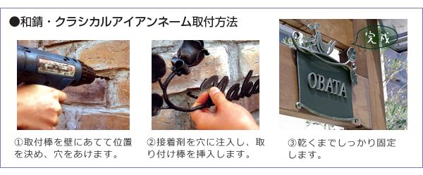 ※古くて美しい雰囲気を重視した独自の「古美仕上げ」は、職人が一点一点手作業で化粧仕上げを行っております。職人の手によって塗料を薄く何度も塗り重ねることによって味わい深い色合いに仕上げられます。同じ表札でも古美仕上げの入り具合は、全て異なってきます。