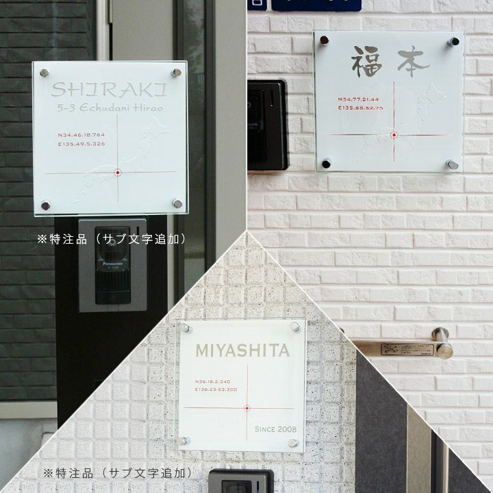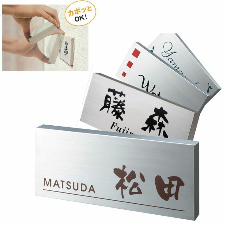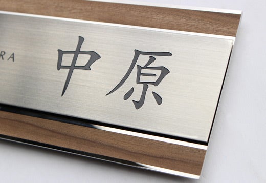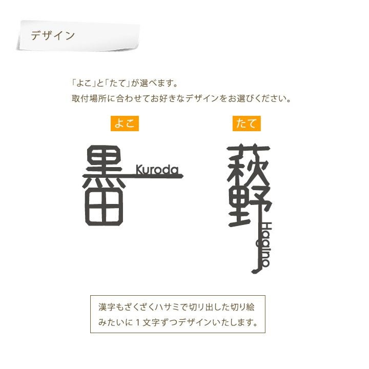 筆文字ステンレス表札日本古来からの文字の芸術【筆文字】あなたの姓を書道家が心をこめて書き出します。一つ一つ手書きでデザインする為、同じ姓でも字体は変わります。ステンレスのカッチリした四角いパネルは、まるで色紙!渋くカッコよく演出できます。