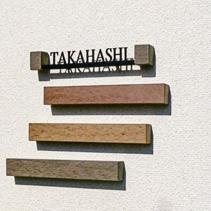 BOWA・RISH木目が美しいのに、腐らない?木目シートを使ったナチュラルな雰囲気の和モダン表札。木が好きな方も屋外を諦めないで。木目の木の種類は5種類。実際にはステンレスだから安心ですね。