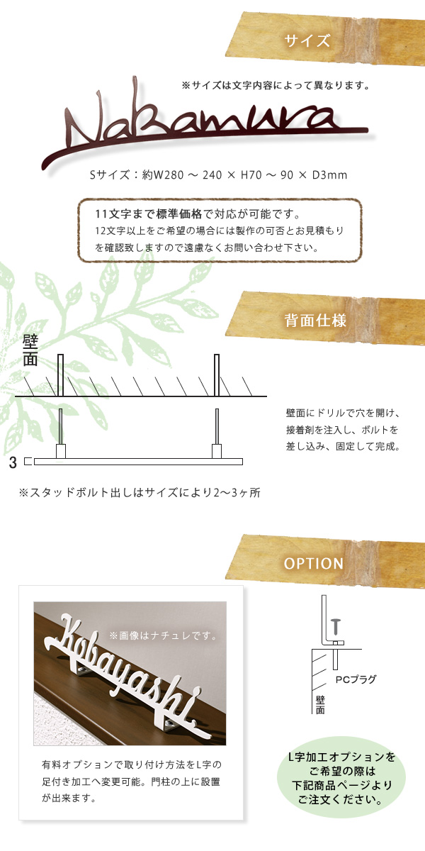 表札 ステンレス ボルト 黒 白 茶色 切り文字ステンレス表札 「ブランチ Sサイズ」