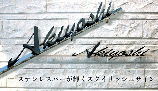 シャープな印象を与えるステンレスがメインのサインです。流れる様な文字と磨き加工を施したラインがスタイリッシュ。