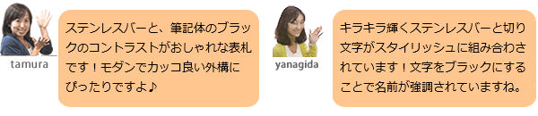 モダンなスタイルのエクステリアに良く似合う表札です。