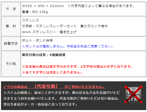 ●お名前は頭文字のみ大文字となります。 ※全て大文字は対応不可。