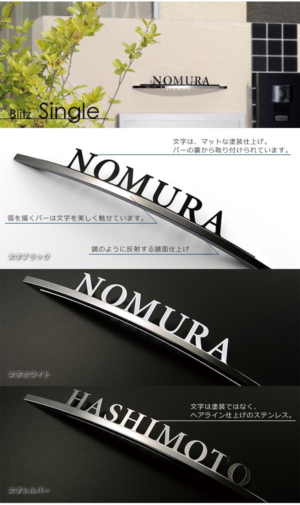 4. 「ステンレス表札 ブリッツ(Blitz) シングル」