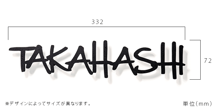 サイズ:W332×H72×D20(見本「TAKAHASHI」の場合、厚みは背面金具も含む)
