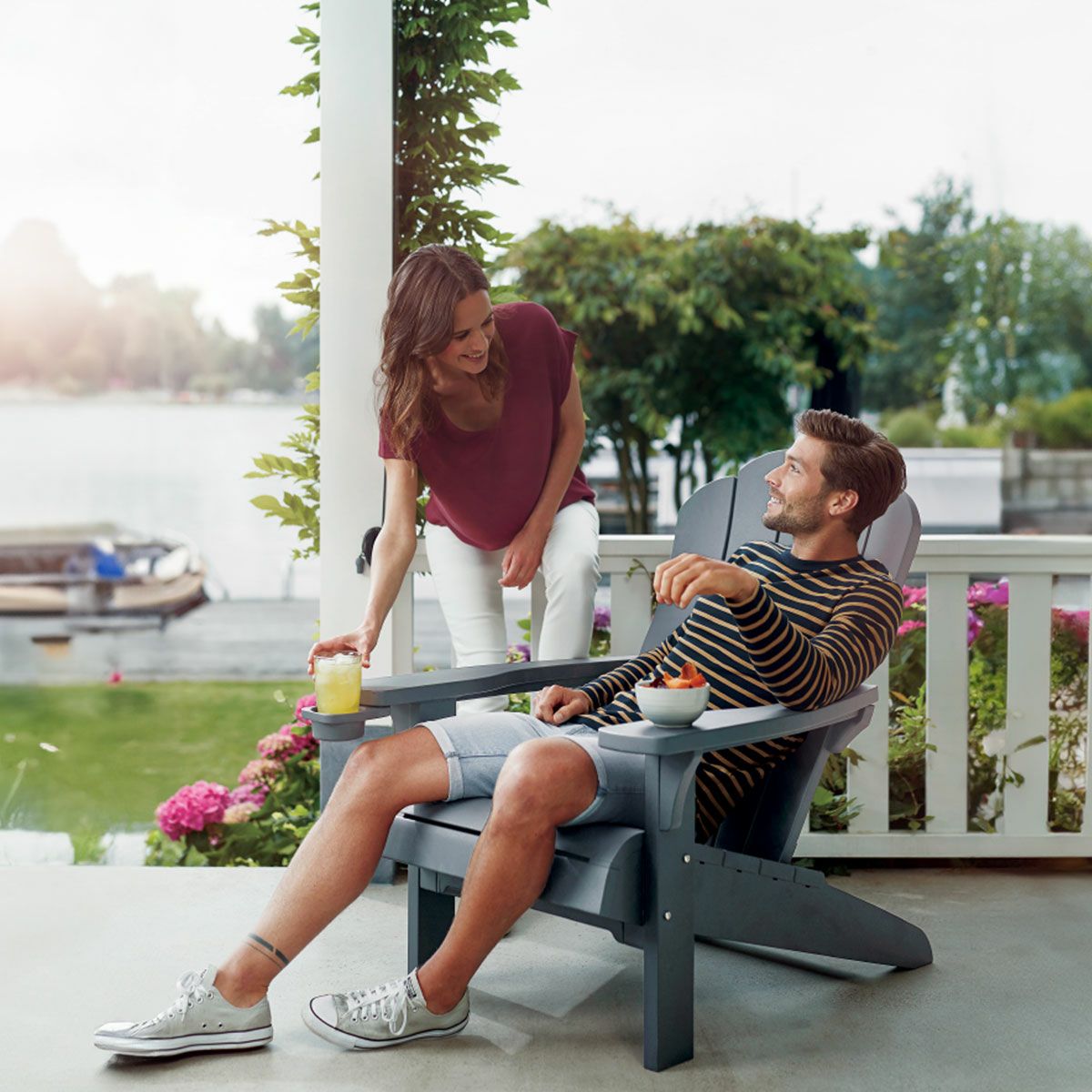 ガーデンファニチャー リゾート ローチェア 樹脂 屋外用 室外用 ケーター レトロアメリカン ドリンクホルダー アウトドア プール 樹脂製ガーデンチェア 「ケター (KETER) アルパイン アディロンダック チェア」