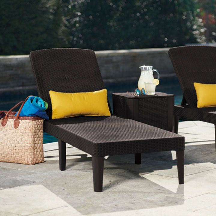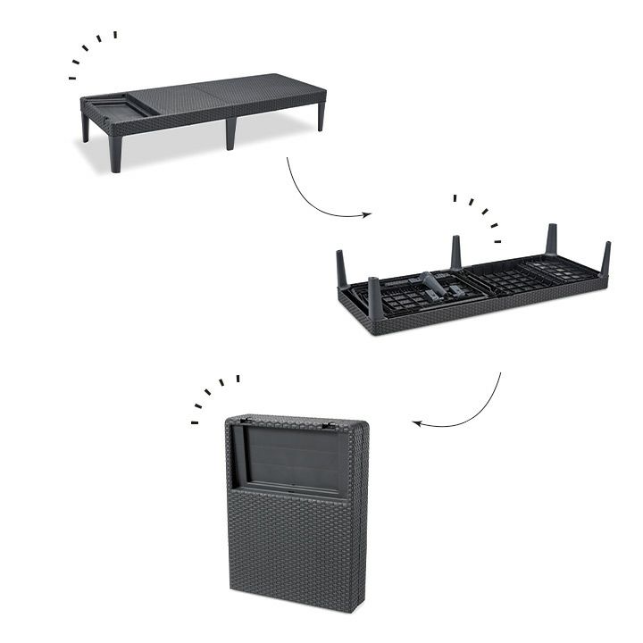 KETER Rio ガーデンファニチャー リゾート ラタン風家具 ローチェア サイドテーブル オットマン 樹脂 屋外用 室外用 ロースタイル 「ケター (KETER) リオ バルコニー ガーデンチェア&サイドテーブル 3点セット グラファイト 662431」
