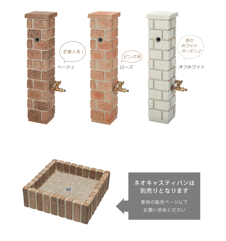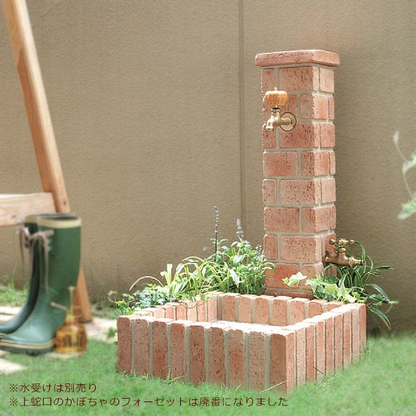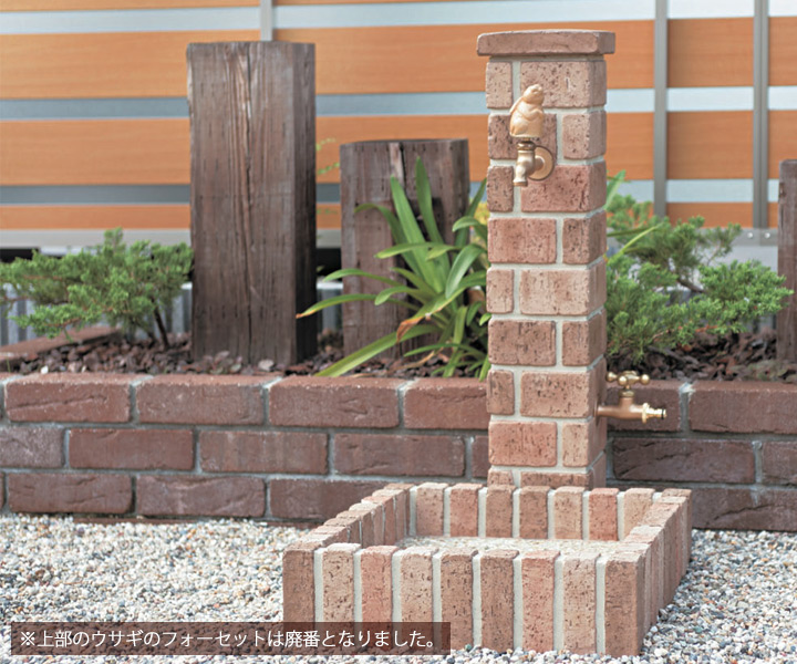 レンガの素材感がとてもよく出ている立水栓です。マットな仕上がりで、本物のレンガのお庭にあっても違和感が少ないんです。