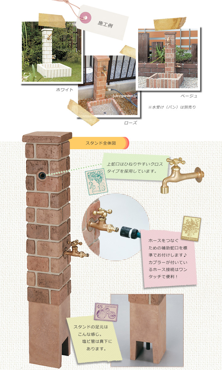 艶のない本当のレンガに近い質感の立水栓です。汚れてきたら更に本物に近い風合いに。