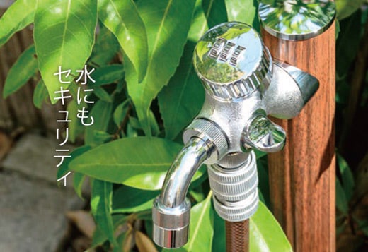 セキュリティロックがついた、盗水防止機能付き蛇口です。 ダイヤル式だから、ハンドルを取り外したりまた付けたりといった作業は不要です。ホース用の二口目の蛇口もあり、まさに万能水栓です。