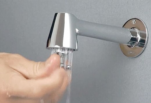「枝」をヒントにした独特の形は、水も出やすく、持ちやすいんです。標準で、水がアワのように出てくる仕様なので、飛び散らず安心して使えます。水抜きをすれば寒冷地でも使用可能。JWWA(日本水道協会)新基準適合商品