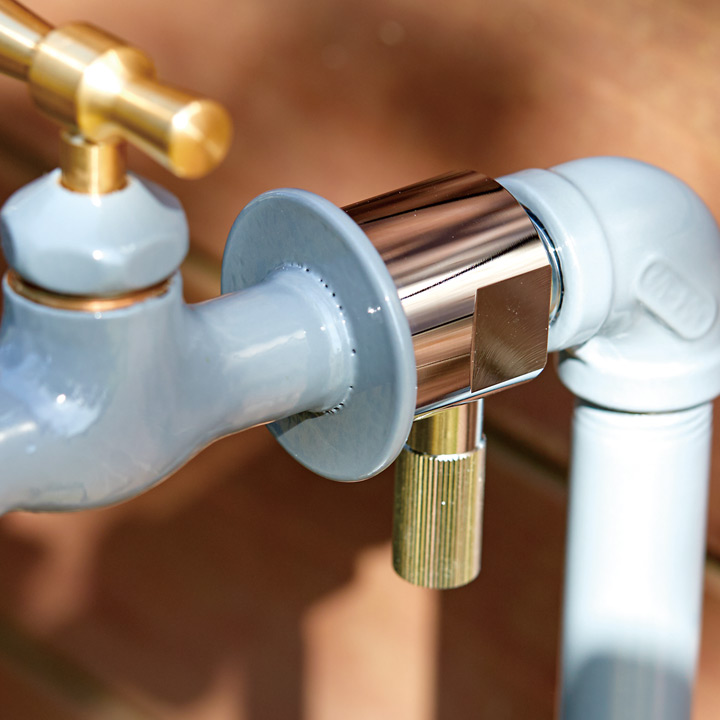 高級感漂うメタリックなノズルと格子柄のホースの組合せが素敵です。