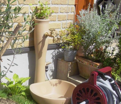 大人ナチュラルや可愛い立水栓、カラフルポップな立水栓に合わせたい、シンプルナチュラルな水受けを販売中。可愛い立水栓にはシンプルだけど優しい色合いのガーデンパンをお薦めします。