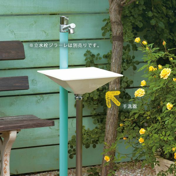 別売の立水栓ジラーレと組み合わせれば、お庭にオシャレな手洗い場が完成!