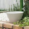 小ぶりな陶器の水受け「ガーデンポット:ホワイト」お庭に可愛く馴染むガーデンパンです。