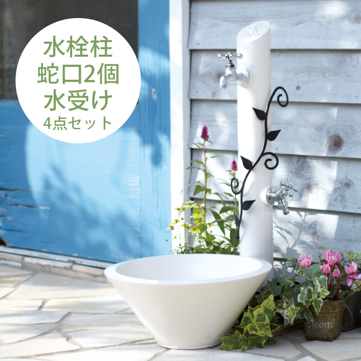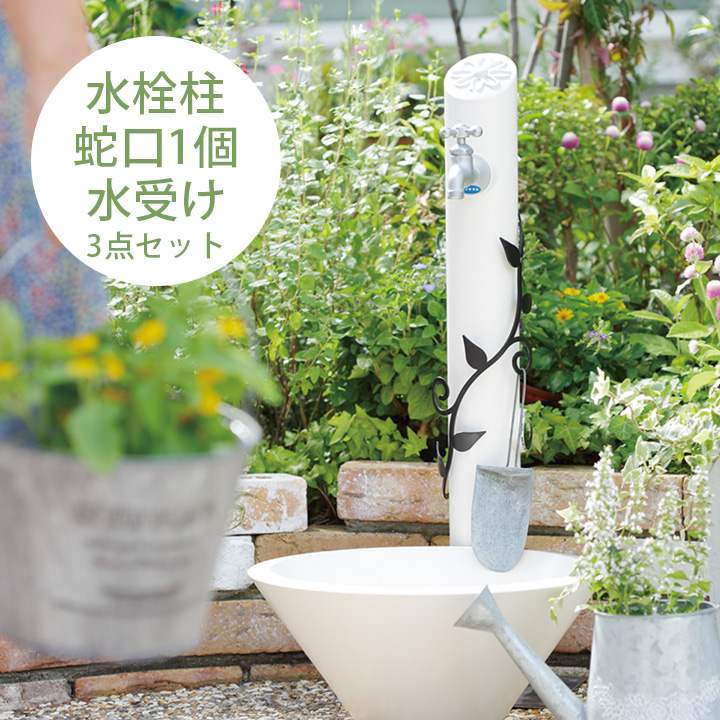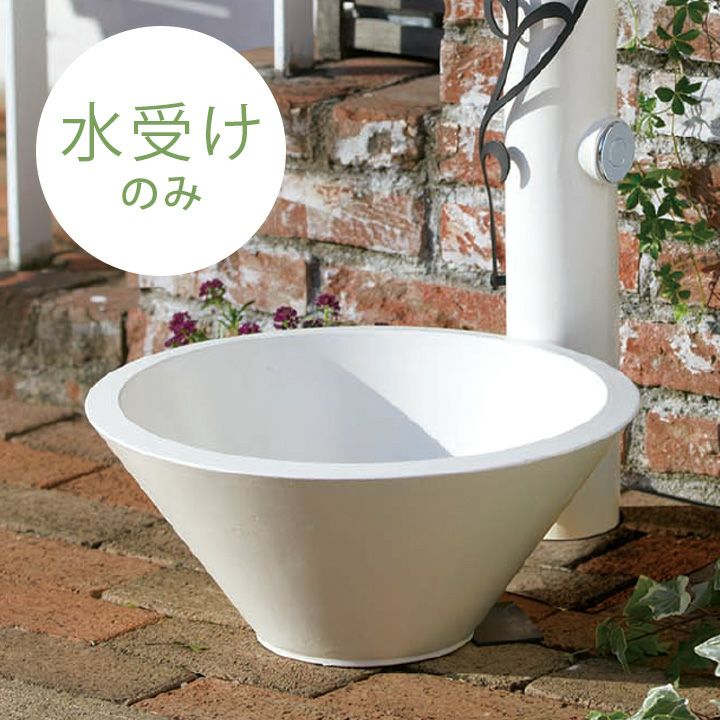 ホワイトカラーが、お庭に映えるシンプルな水受け。