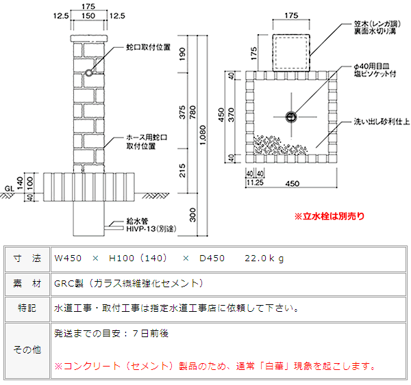 ※コンクリート(セメント)製品のため、通常「白華」現象を起こします。