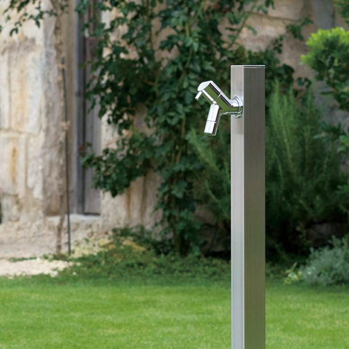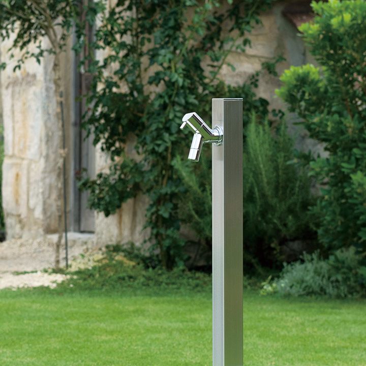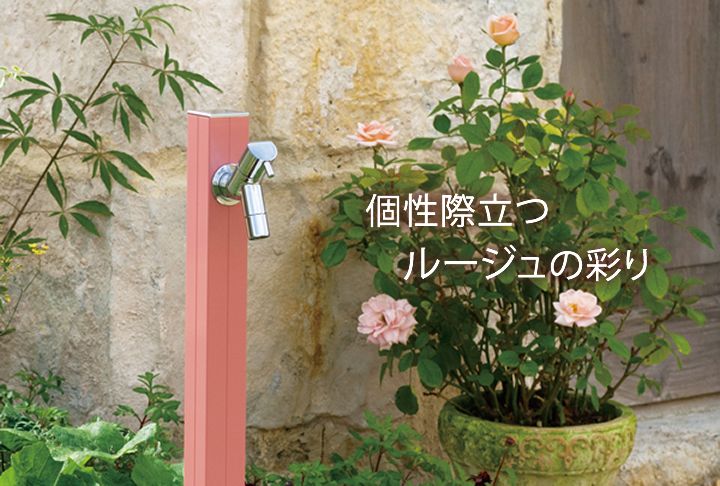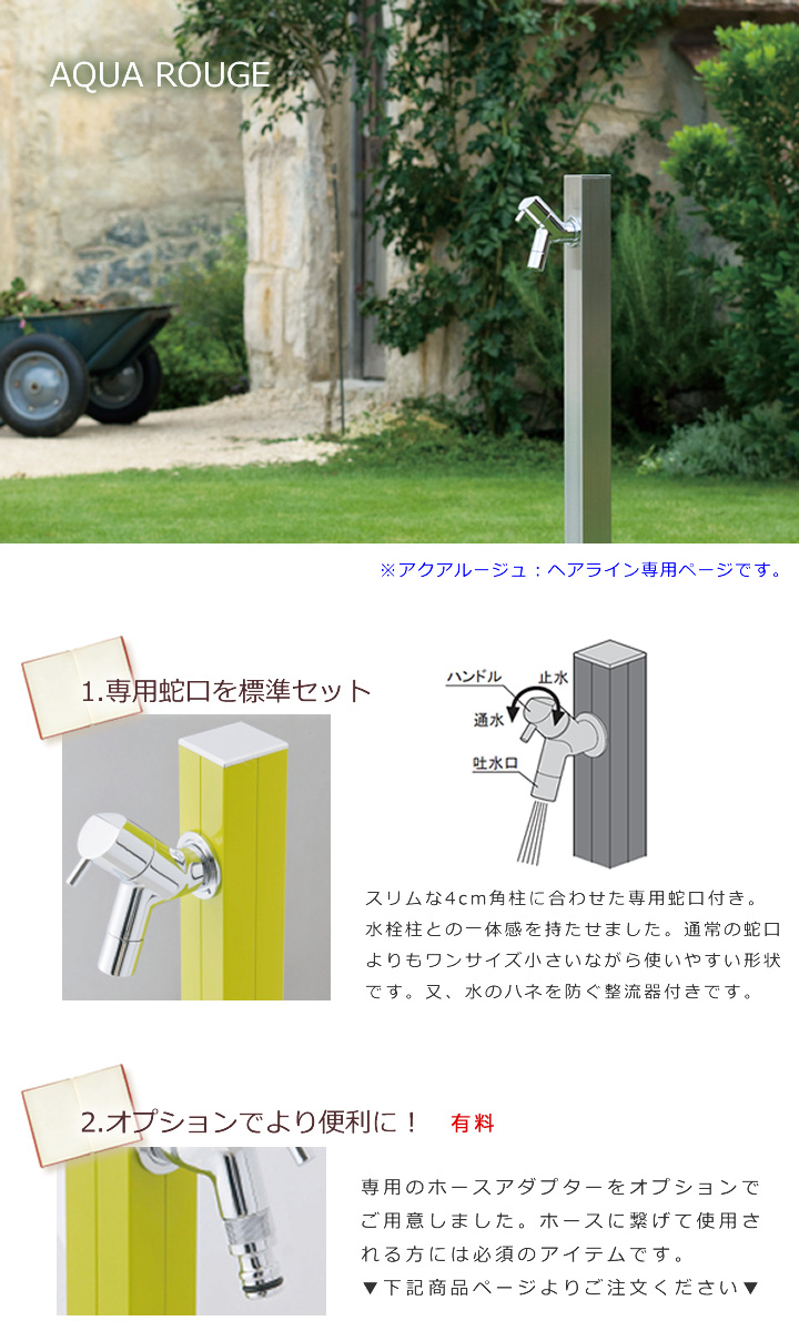 4cm角のシンプルな水栓柱「アクアルージュ」、ヘアライン色専用の商品ページです。