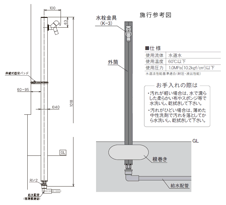 ※寒冷地には対応しておりません。凍結の恐れがある場合には必ず水抜栓を設置してください。