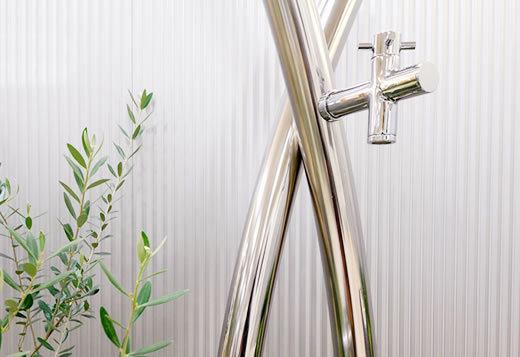 数種類のモダンなデザインに幾種類ものステンレス仕上げが豊富なデザイン水栓柱。ホテルのエントランスにも似合うモダンなデザインが豊富です。ステンレスヘアライン、鏡面、スーパーブラックなど豊富なステンレス仕上げに迷うかも!?