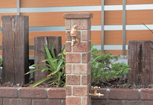 あたたかなレンガの表情を持った立水栓は、ガーデンに美しく溶け込みます。現場でレンガを積み上げて施工するより低コストなのも魅力です。立水栓とパンが一緒になったタイプも豊富。レンガのようですが、上部なコンクリート製です。