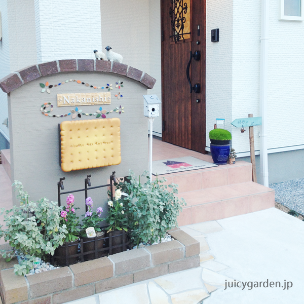 そして、門柱の右上に、ひょっこりぽっこり羊の親子でお出迎え