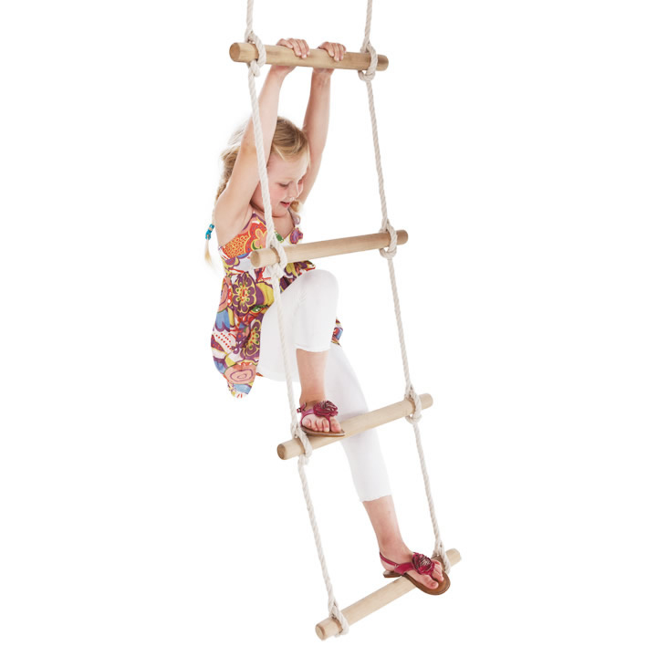 子どもの遊びと体力づくりのために、土間に縄梯子を取り付けました